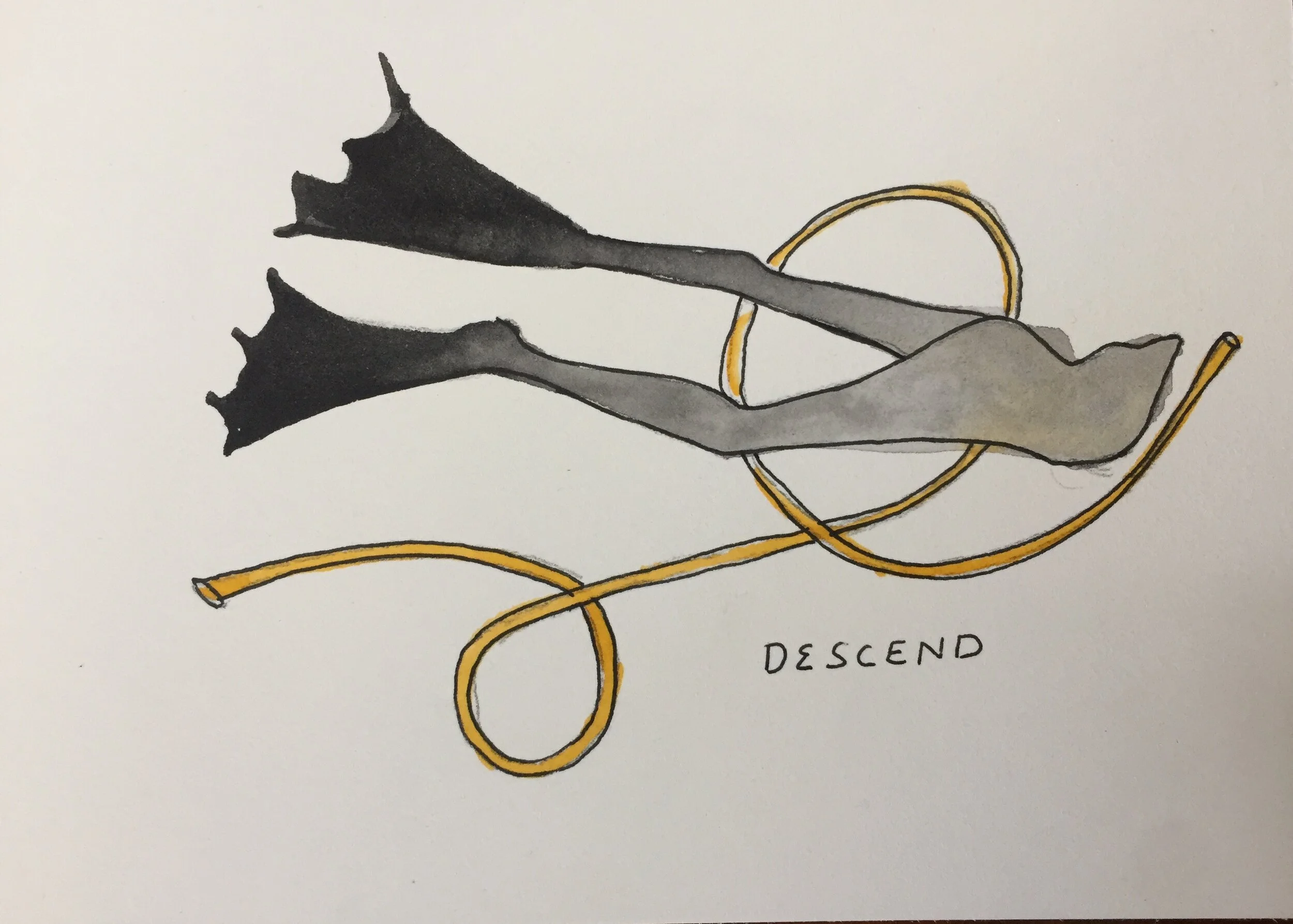 Paintings about diving, breath, pressure, and gravity. Utila, Honduras: March 2019.